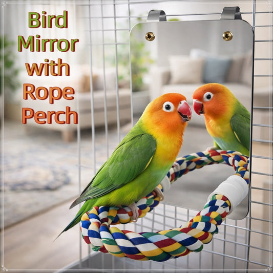 Bird Mirror With Perch Cage Swing Toy For Parakeets And Parrots