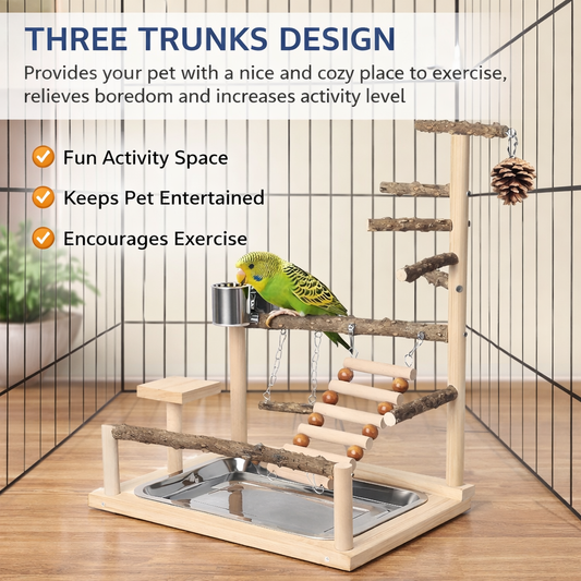 Parrot Activity Center - Wooden Bird Playstand With Swings & Ladder