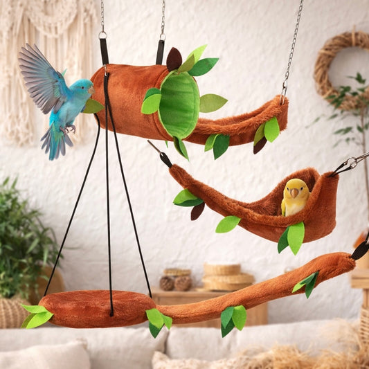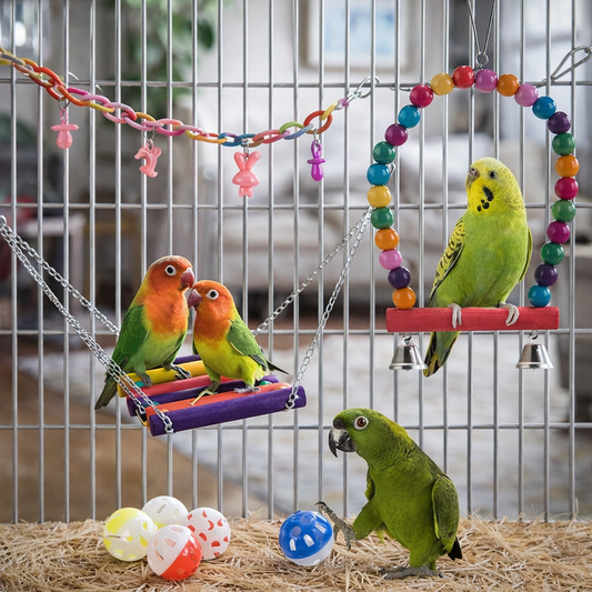 Bird Cage Toys 11 Piece Wooden Parrot Swing Set With Chewable Beads