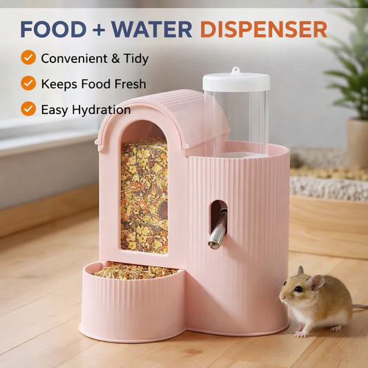 2-in-1 Hamster Feeder Waterer Automatic Food Bowl Pink