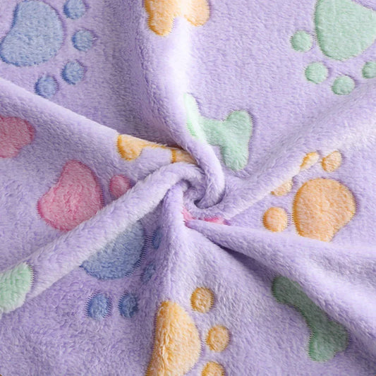 Winter Velvet Pet Blanket With Paw Pattern - Soft Warm Dog Cat Mat
