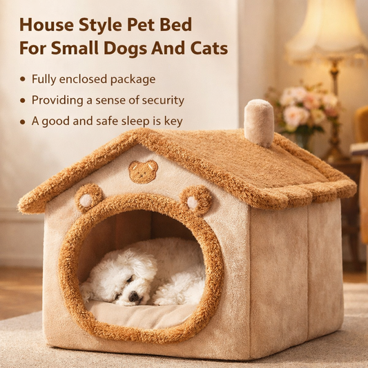 House Style Pet Bed For Small Dogs And Cats - Washable Winter Warm