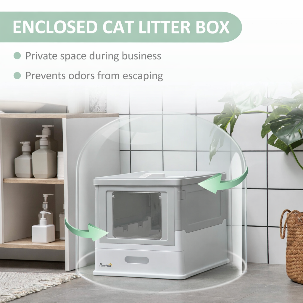 PAWHUT CAT LITTER BOX WITH LID - PREMIUM HOODED TOILET SYSTEM
